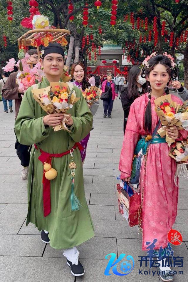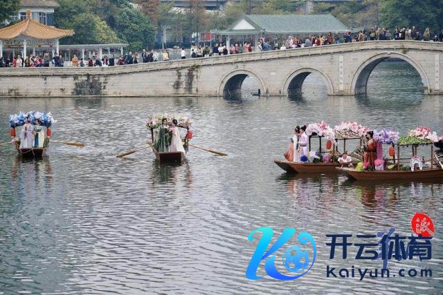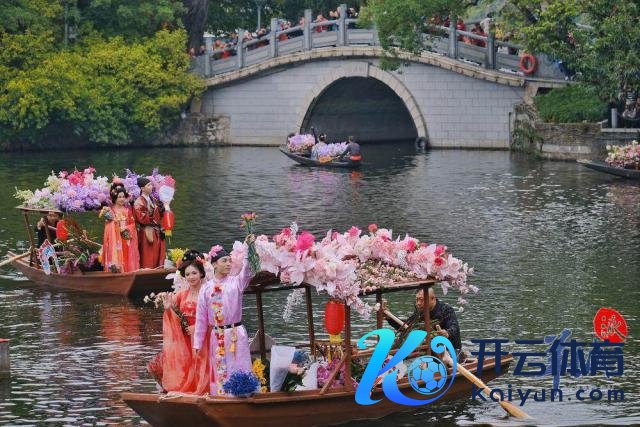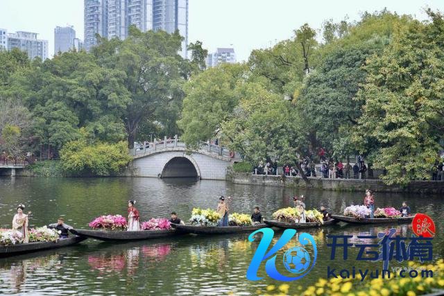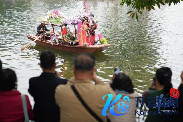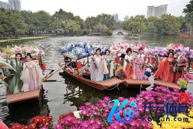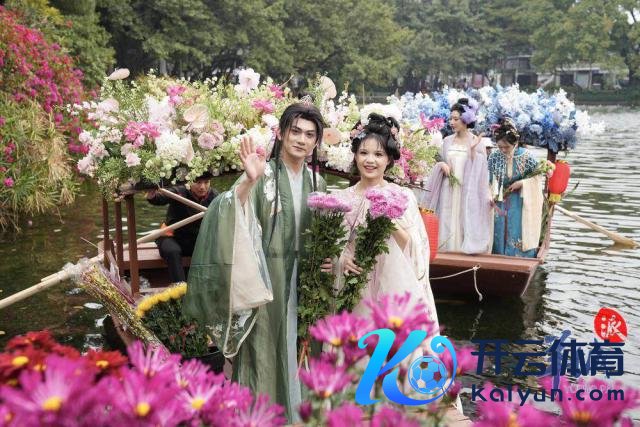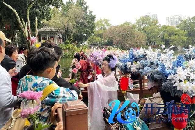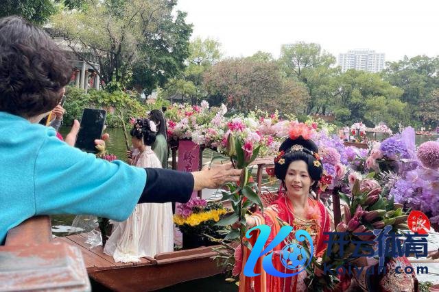 随后,水上花墟在荔湾湖公园追究开锣。一艘艘特质花船在湖面迟缓驶过,多位身穿汉服的俊男好意思女乘坐花船叫卖鲜花,千般终点花草、传统年花五花八门,重现以前水上花乡盛景。