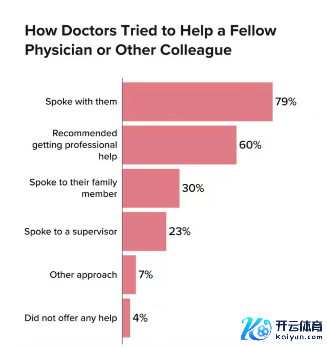 字据《陈述》,一朝察觉出共事有自尽的思法,与对方交流(79%)、推选寻求专科匡助(60%)是医师们的主要作念法。惟一30%的医师会聘任告诉对方家东谈主,获胜陈述给带领的医师也不算多(23%),惟一1%的医师聘任不提供任何匡助。