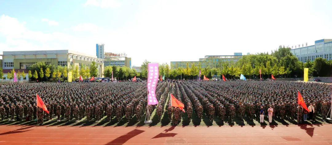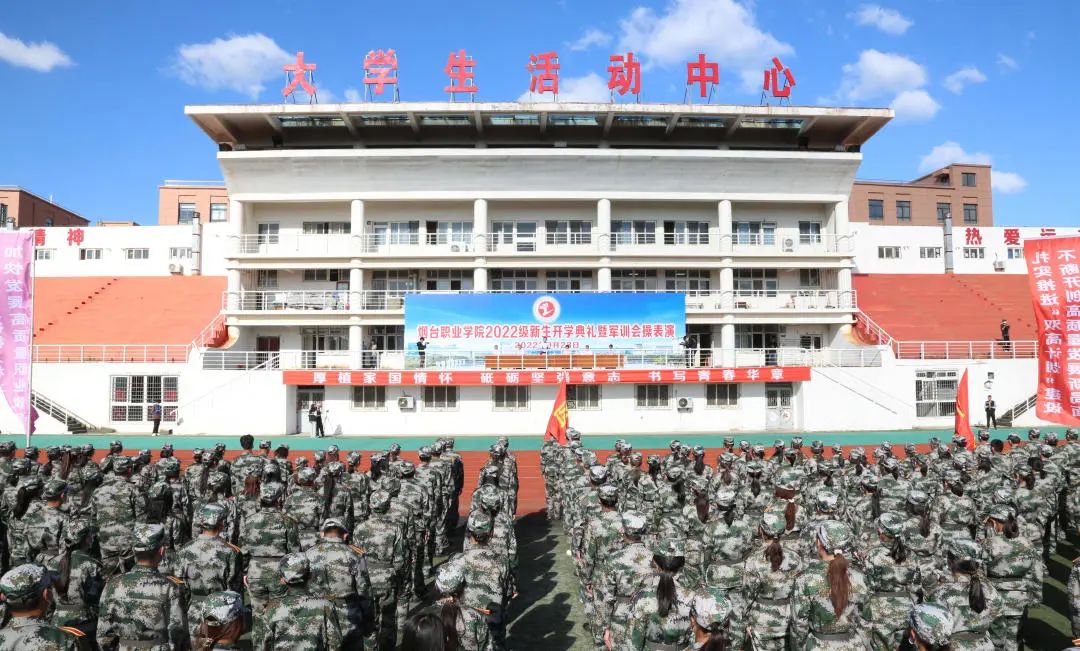 9月23日,必赢766net手机版2022级新生开学典礼暨军训会操比赛在体育场举行。校长温金祥讲话,党委副书记韩英主持典礼,副校长邵侠作军训会操总结讲话,学校领导班子成员、各行政相关部门主要负责人、各系班子成员及团总支(学生科)负责人、2022级新生辅导员(班主任)和全体新生参加。