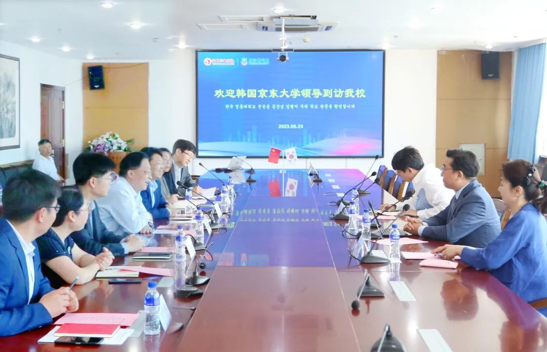 全晟镕对学校的热情接待表示感谢,详细介绍了京东大学的发展历程、特色专业及国际化办学情况。他希望双方围绕师资派遣、师生交流、科研合作等方面进一步合作,携手谱写两校共同发展新篇章。