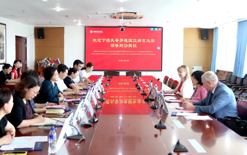 6月9日,俄罗斯下诺夫哥罗德国立语言大学(以下简称“下语大”)Ж.В.尼康诺娃校长一行三人到必赢766net手机版进行友好访问。学校党委书记陈新姿、副校长邵侠出席座谈会,会计系、经济贸易系、艺术设计与教育系及国际交流与合作部相关人员参加交流。