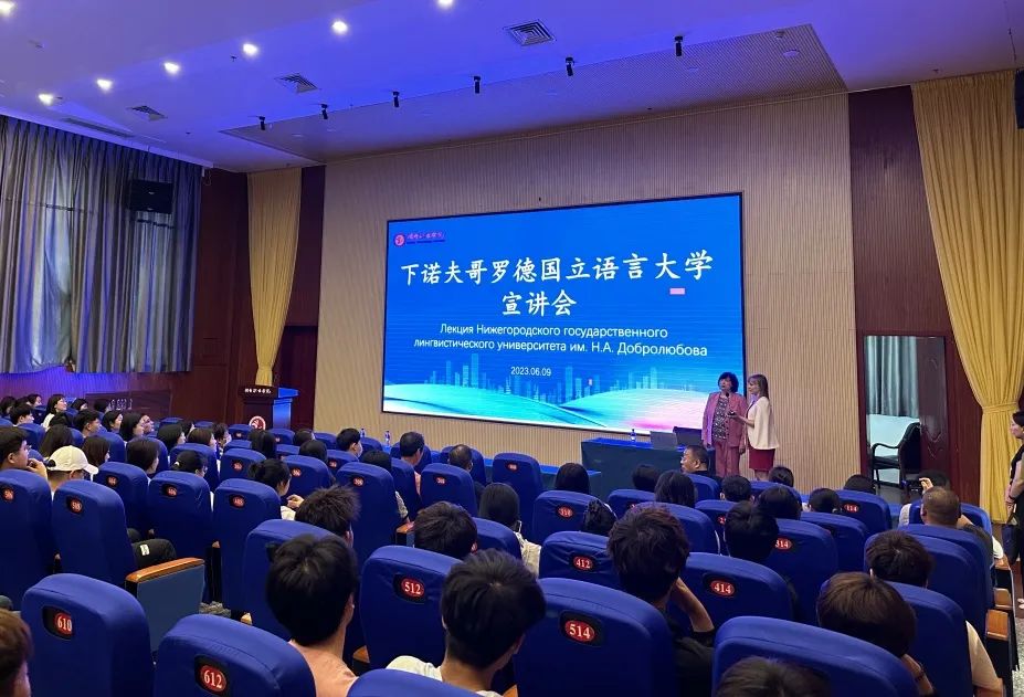 签约仪式结束后,下语大尼康诺娃校长一行在办公楼一楼报告厅进行宣讲,向学校百余名参会师生介绍了下语大的国际化教学情况,并就未来两校师生的国际化交流提出美好展望。