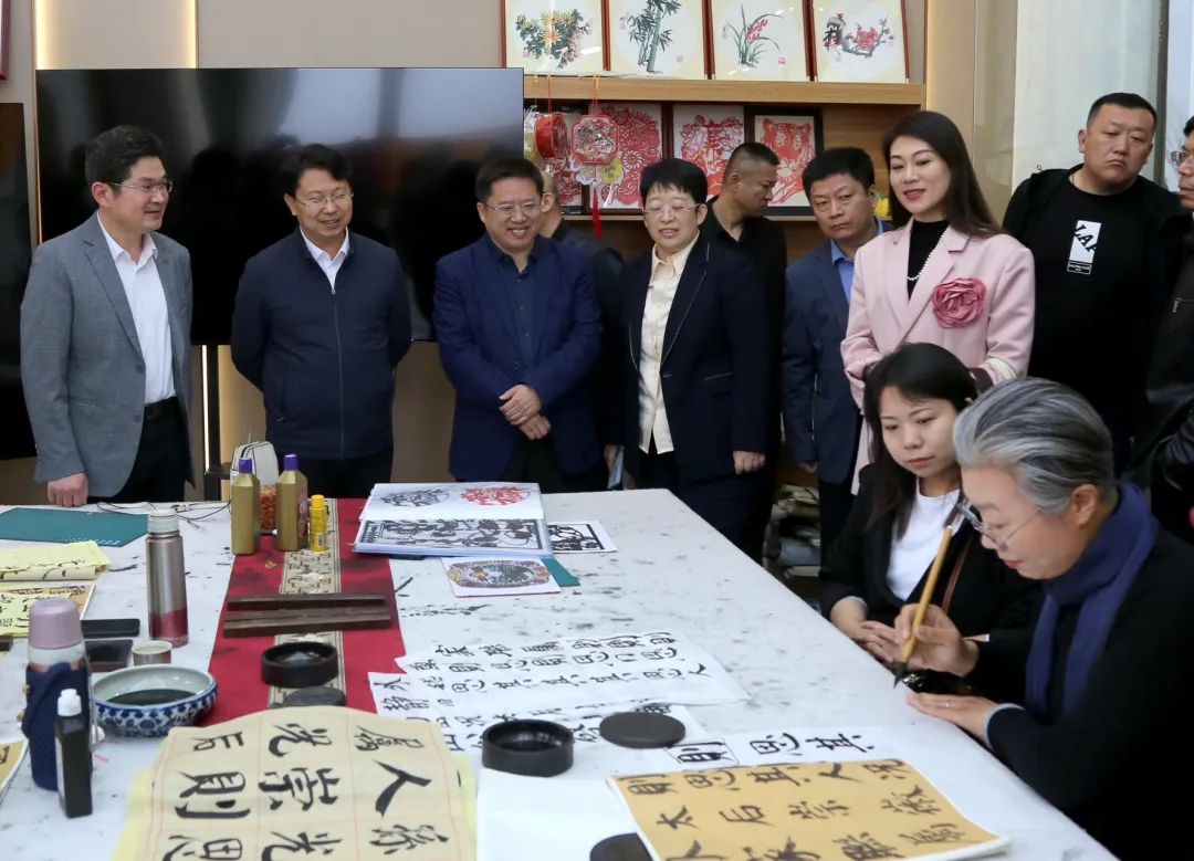 与会人员现场观摩烟台理工学校春天乐龄学院“全民终身学习活动成果展示”。