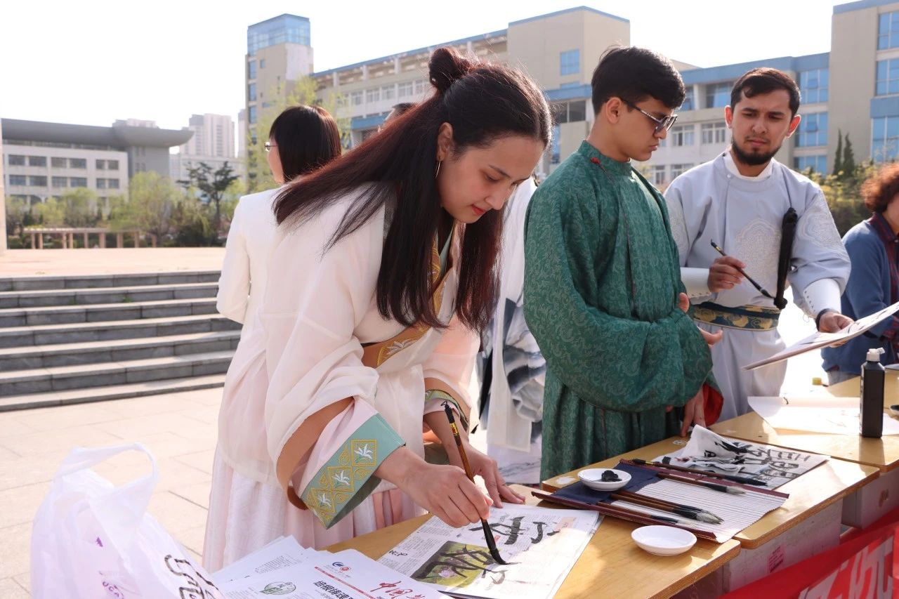 围绕“中文:架起文明互鉴桥梁”主题,国际交流与合作部组织留学生开展穿汉服、写汉字、“我爱中国”摄影、短视频创作等系列丰富多彩的活动,留学生们身穿美丽的汉服,演绎华服之美,体验古风十足、意蕴深厚的中国服饰文化;在一笔一划的书写中,领略汉字的深邃优美,加深了对汉字的情感,增进了对中国文字的理解;在七星湖畔拍照片、做视频,用镜头语言记录学校的美好,表达对中国文化的热爱。