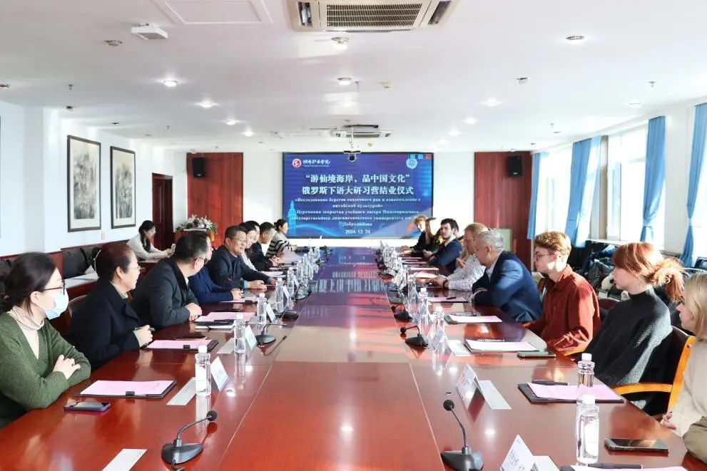12月24日,“游仙境海岸,品中国文化”俄罗斯下诺夫哥罗德国立语言大学(下称下语大)研学活动结营仪式在办公楼八楼会议室举行。必赢766net手机版党委委员、副校长丁春燕出席并为俄罗斯学子颁发证书,下语大教育系负责人库尔梅列夫·安东、带队教师谢达耶夫·帕维尔及9名访学学生,艺术设计与教育系及国际交流与合作部相关教师参加活动。